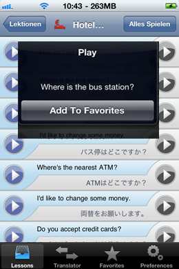 The iSayHello travel phrasebooks contain11 easy-to-use lessons that are also available offline.